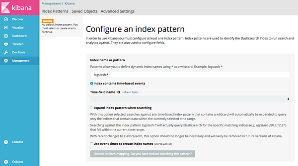 起動後、ブラウザにhttp://localhost:5601(kibana.ymlでURLを編集している場合はそのURL)と入力します。Kibanaの画面が閲覧できればインストールは完了です。参考画像を載せますので、こちらと同じような画面が見えているか確認して下さい。