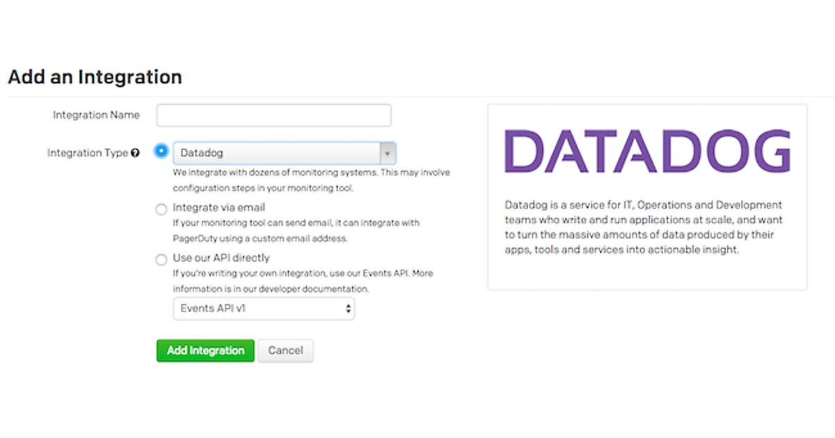現在約200種類のシステムと連携が可能となっており、著名なものはほぼ全てカバーされています。モニタリングシステムではない JIRA 、Slack、Zendeskといったサービスとも連携させることができるので、カスタマーサポートなどの用途でも利用できるようになっています。ここではモニタリングSaaSであるDatadogとの連携を例に進めたいと思います。