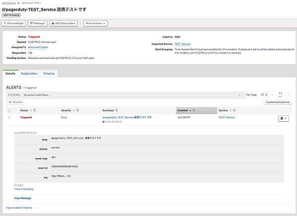 無事にインシデントがトリガーされました。