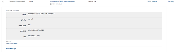 先程と同様にDatadogからsuppressという文字を含めてアラートを送信します。