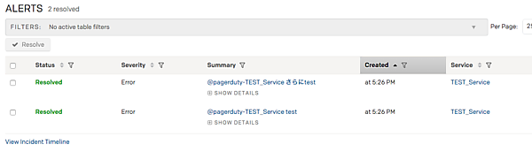 送信してもインシデントが起きないはずです。Service設定のIncident BehaviorがCreate alerts and incidentsになっている場合、Incidentにならない場合でもAlerts画面で確認できます。