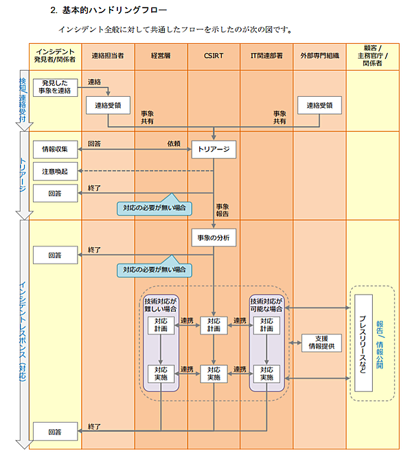 図:インシデントハンドリングフロー(「インシデントハンドリングマニュアル」より引用)