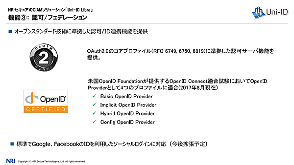 OAuth 2.0のコアプロファイルに準拠し、OenID Connect適合試験で4つのプロファイルに適合していることを紹介 - 不正アクセス検知