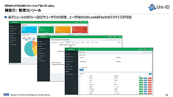 ポリシー設定やID管理などができるほか、ユーザー向けUIのカスタマイズが可能になることを紹介