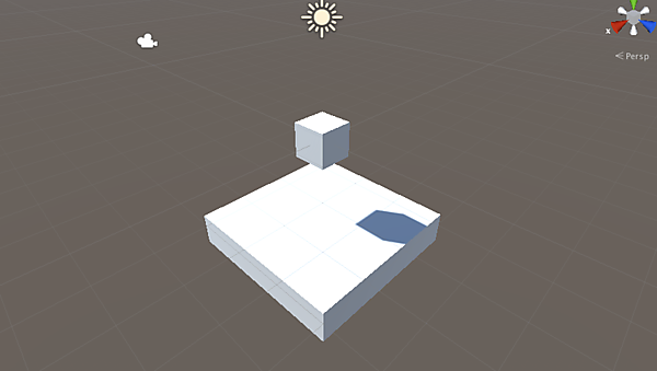 Cubeが重力に従って落下していくと思います。しかし、今の状態ではまだ“床”がありません。このままではCubeは永遠に落下し続けてしまいます。そこで、落下を確認するために図7のような床を作りましょう。