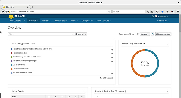 Foreman+Katelloの構成は、既存のForemanにKatelloのプラグインをインストールすることでも実現できますが、まっさらな状態でインストールする場合はKatelloのインストーラを使用したほうが簡単です。