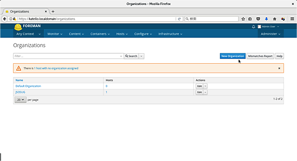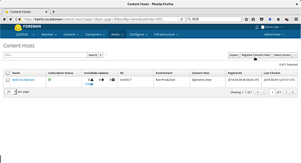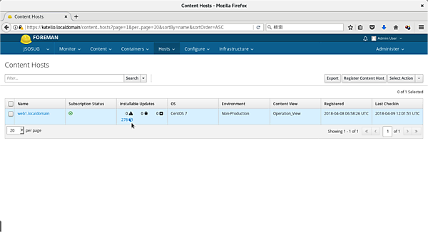 それでは、Katelloを使って実際にCentOS(7.4)を管理してみましょう。KatelloではWeb-UIからシステムを管理します。