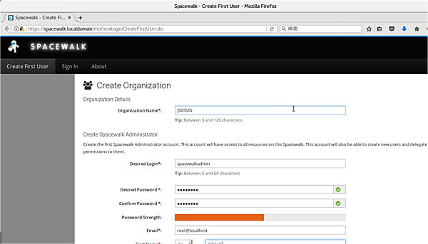 インストール直後にSpacewalkサーバにhttpsでアクセスすると、組織(Organization)の名前とSpacewalkのID・パスワードを設定する画面が出てきます(図11)。以降は、ここで設定したID・パスワードでログインすることになります(図12)。