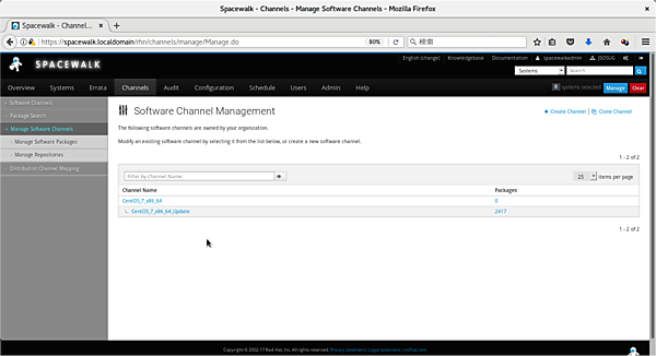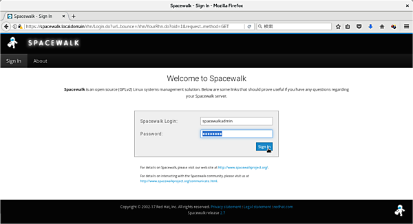 それでは、Spacewalkで実際にCentOS(7.4)を管理してみましょう。SpacewalkもWeb-UIからシステムを管理します。
