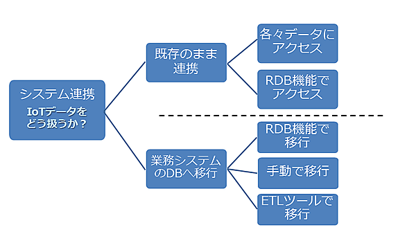 「RDB機能でアクセス」や「RDB機能で移行」など、RDBの機能を利用した連携を実現するには、RDB自身がその機能(と性能)を充足している必要があります。