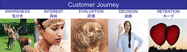 顧客が商品やサービスを知り、最終的に購買するまでの行動をプロセス化すると、「気付く」→「興味を持つ」→「評価する」→「決断する」→「キープする」というような流れになります(図1)。こうした行動を旅行に例えて「カスタマージャーニー」と呼び、個々のプロセスに焦点を当てたマーケティングとその効果測定が行われています。