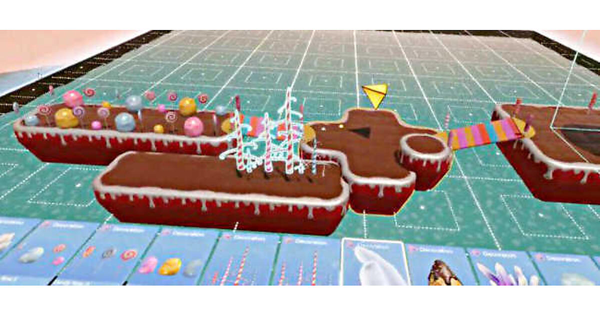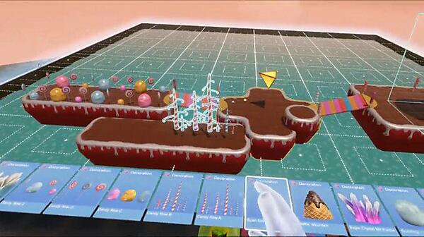 本ツールではVRデバイスを使用し、VR内で直感的に3Dコンテンツを制作することができます。ライブデモでは手元にあるカードに触れるとオブジェクトが実体化、これらのオブジェクトのサイズや色を変更し、目の前のボードに配置してゲームのステージをVRで作成する様子が配信されました。