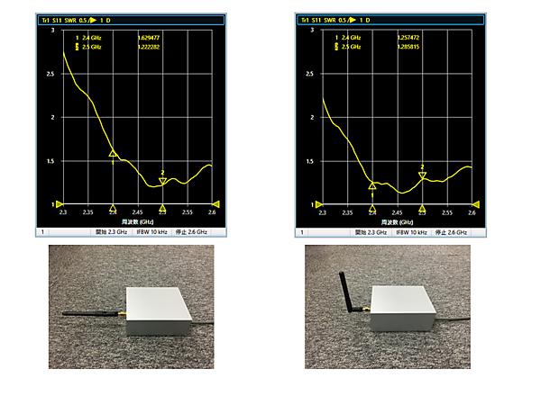 アンテナ・メーカのデータシートは周囲に何もない理想的な環境での測定結果ですので、各装置に組み込んだ状態での性能を測定するには、個々にVNAで測定する必要があります。