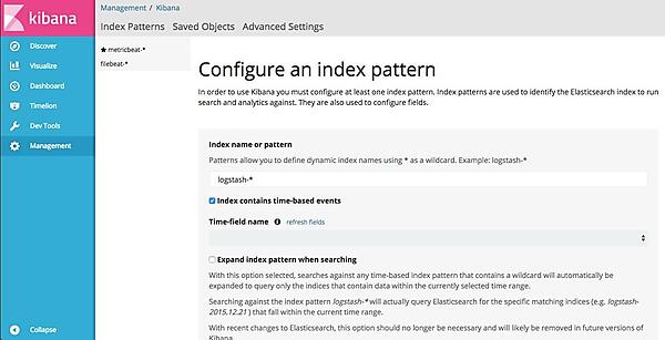 KibanaはElasticsearchのindexからデータを取得していますが、Elasticsearchは複数のindexを持つことができます。Kibanaで利用するindexを指定しないと、どの情報を出せばいいのかわかりません。つまり、新しくLogstashやMetricbeatを設定した場合、データが保持されているindexの名前をKibanaに教える必要があるのです。