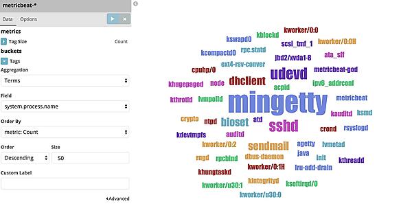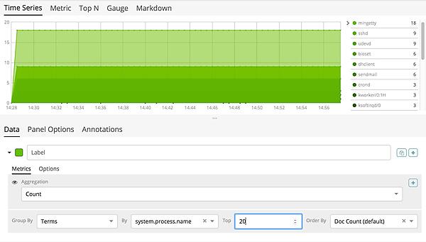 今回はデータ件数が下位20件のプロセス名を表示することにします。この場合、Order byは「metric:Count」、Order「Ascending」、Size「20」と設定します。
