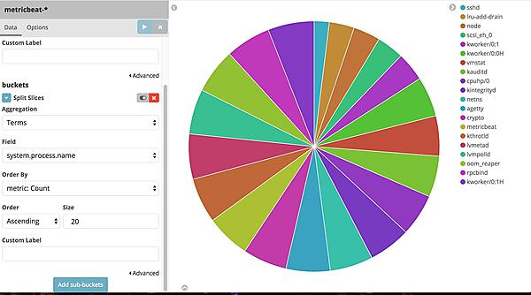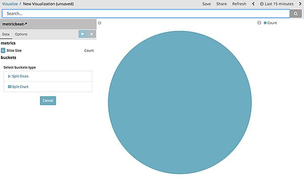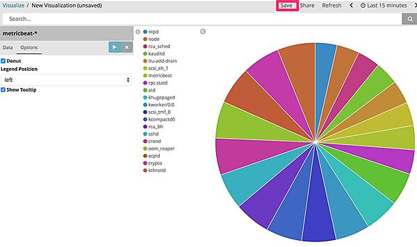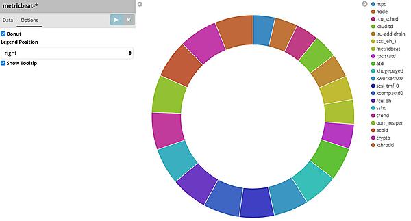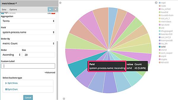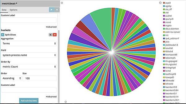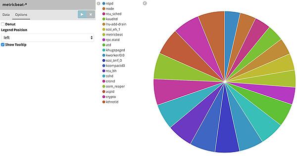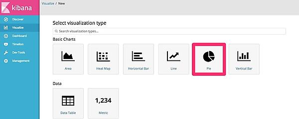 では、今度こそグラフを作成しましょう。今回はOS上で動いていたプロセス名の内訳を表示する円グラフを作成したいと思います。Visualize画面でPie chartを選択します。