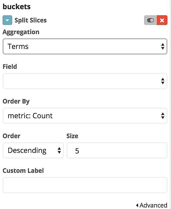 bucketsを指定すると、グラフの色をデータの種類ごとに分けることができます。「Split Slices」は1つの円グラフをどのように分割して表示するかを決定します。「Split Slices」は異なる条件で1つの画面に同じ種類・同じ設定のグラフを表示します。