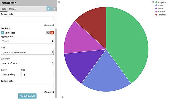 一通り設定ができた後は、「Add-sub^buckets」ボタンをクリックしさらに円グラフを分割する条件を追加するか、同じ画面に違う基準で2つグラフを表示するか選ぶことができます。設定内容は今までの説明と特に変わりません。