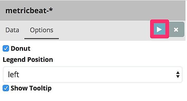 次に、「Field」欄から「system.process.name」を選択します。この状態で1度画面内の青い矢印ボタン(矢印が右を向いているもの)をクリックして下さい。すると、現在行っている設定がグラフに反映されます。