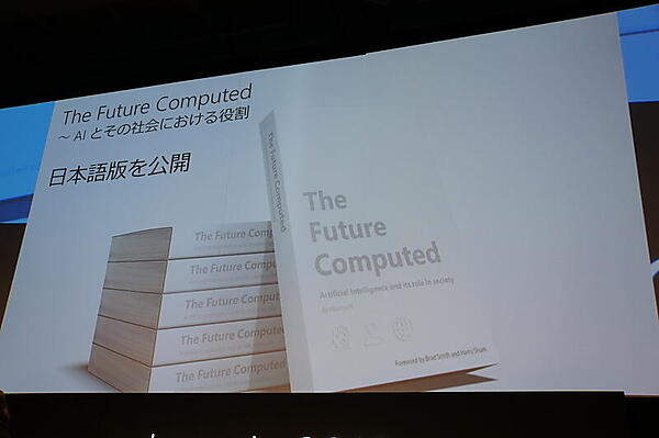 同時に、AIについて「Microsoftは責務を大切に考えている。将来の仕事や雇用に対する影響を考えていかなくてはいけないと思っている」と強調。同日、書籍『Future Computed:人工知能とその社会における役割』日本語版をPDFで無償公開したことをアナウンスした。