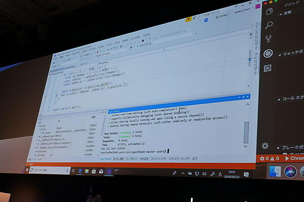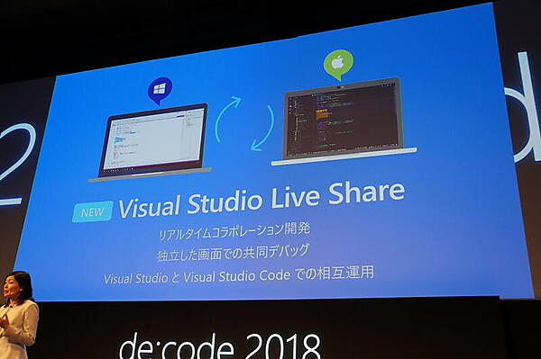 新機能として、これらVisual StudioおよびVisual Studio Codeを使って共同作業をするためのサービス「Visual Studio Live Share」が紹介された。