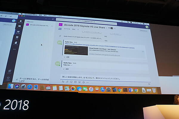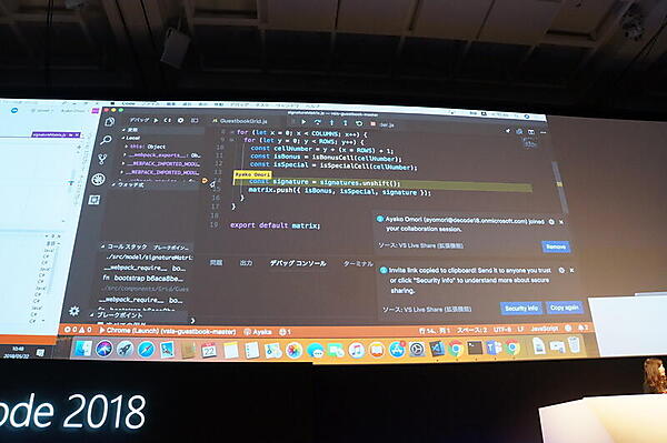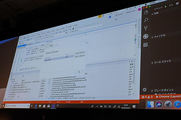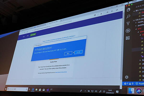 実際にVisual Studio Live Shareがステージ上で、大森彩子氏と原綾香氏によってデモされた。
