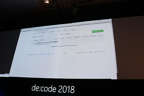 続いてLiuson氏は最近のMicrosoftの変化として、GitHub上のOSSに貢献している最大の単一企業であるとアピールした。GitHubはde:code 2018の展示会場にも出展していた(編注:その後MicrosoftがGitHubの買収を発表した)。
