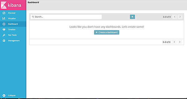始めに画面左上のDashboardボタンをクリックし、Dashboard画面を開きます。青いプラスボタンをクリックすると、新規にDashboardを作成することができます。