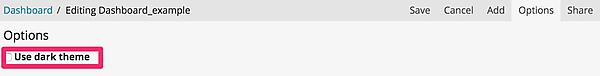 「Options」ではDashboard画面の背景を変更するか決定できます。Use dark themeにチェックをつけていると、背景色が黒くなります。お好みで設定すると良いでしょう。背景色を変更できるのはDashboard画面のみとなっています。