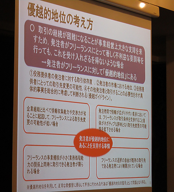山本:まさに先ほどの企業のような態度です。優位的地位にあるかどうかはケースによって判断されますが、その判断基準は4つあります。