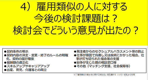 Q:雇用類似の者に対する今後の検討課題は? 検討会でどういう意見が出たの?