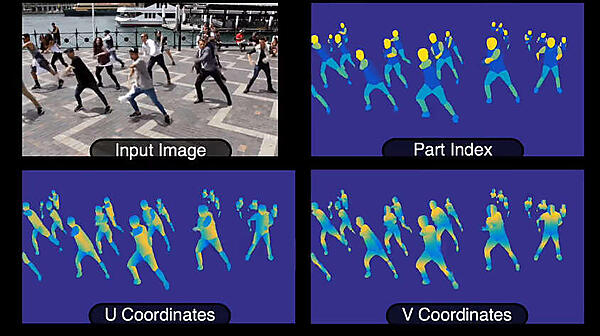 Facebookの開発者チームは、画像処理システム「DensePose」をGitHubで公開しました。2Dの動画から人体の姿勢などを読み取り、3D身体表面モデルを生成するシステムです。