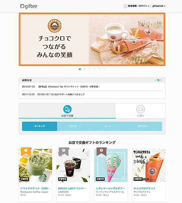ギフティの創業は2010年8月。「会えない友人にコーヒーを1杯贈りたい」という創業者の思いを出発点に、SNSなどを通じてコーヒー1杯、ドーナツ1つといったカジュアルギフトを個人間で贈り合えるサービス「giftee」を展開しています。サービス開始当初の課題は、サービスを形づくっていくこと。ベンチャーゆえに大手企業の商品を導入するのが難しく、商品数を増やすことに奔走していました。