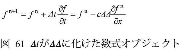 他にも数式エディタがらみで著者らがよく遭遇する問題を紹介しておこう.Δtを入力しようとすると,なぜかΔΔに化けるときがある.その場合は,Δとtの間に文字列の半角スペースを一つ入れて回避する.図61はこれによる誤植の例である.