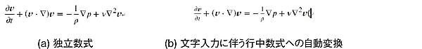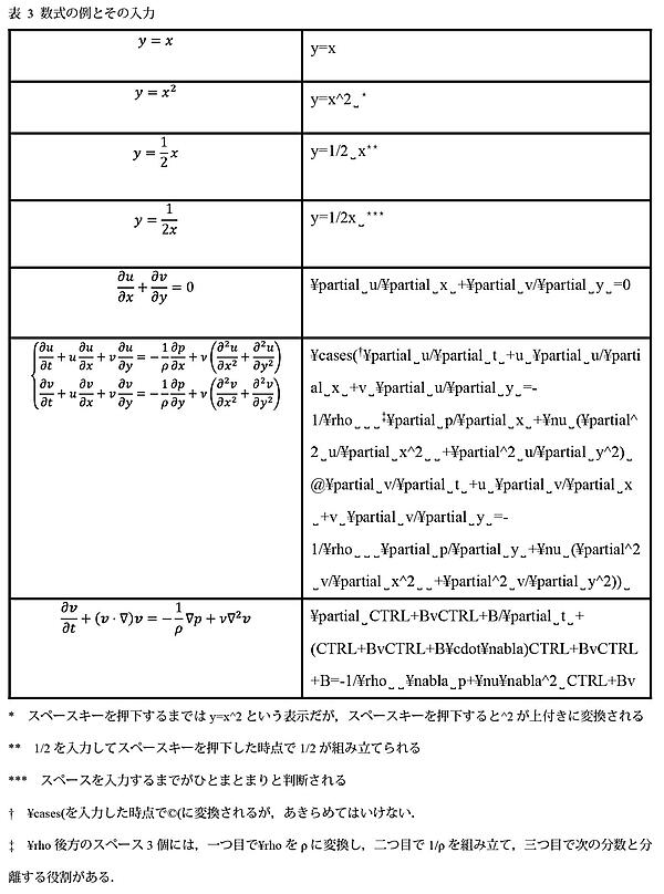 数式エディタと比較して使用方法にかなりの改善がみられ,数式の入力も含めた多くの操作はキーボードのみで完結させることができる.本書は数式の利用方法に主眼を置いているわけではないので,簡単な使い方のみを示すだけに留める7.基本的な使い方や挙動は以下の通りである.