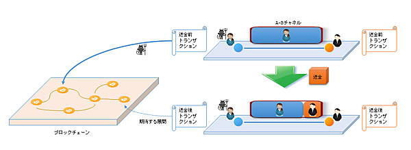 Aさんは、最悪でもBitcoinを取り戻せることを確認した後で、マルチシグアドレスに送金します。送金されたBitcoinがブロックに含まれ、Bさんが指定した以上の承認数(confirmation数)に達すると、AさんとBさん間にチャネルを開いたことになります。
