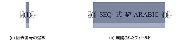 ここでよくよく考えてみると,Wordでは,図表番号が含まれる段落全体を図表番号と認識し,図表番号全体を参照すると,段落全てが展開された.これは,番号とスタイル区切りの間に文字を書けば,その文字もまとめて参照できることを示している.数式の場合,必ず括弧付きで引用されるので,数式番号とスタイル区切りの間に括弧を追加しておけば,図表番号全体を参照すると括弧もまとめて引用されるはずだ.