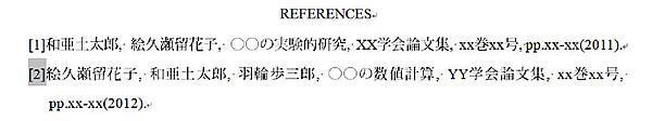 本節では二つの場合について文献番号の引用方法を示す.一方は,文献を第一著者姓のアルファベット順に並べ,文献番号を引用する方法である.他方は,引用順に文献番号を付与し,文献番号順に並べる場合である.