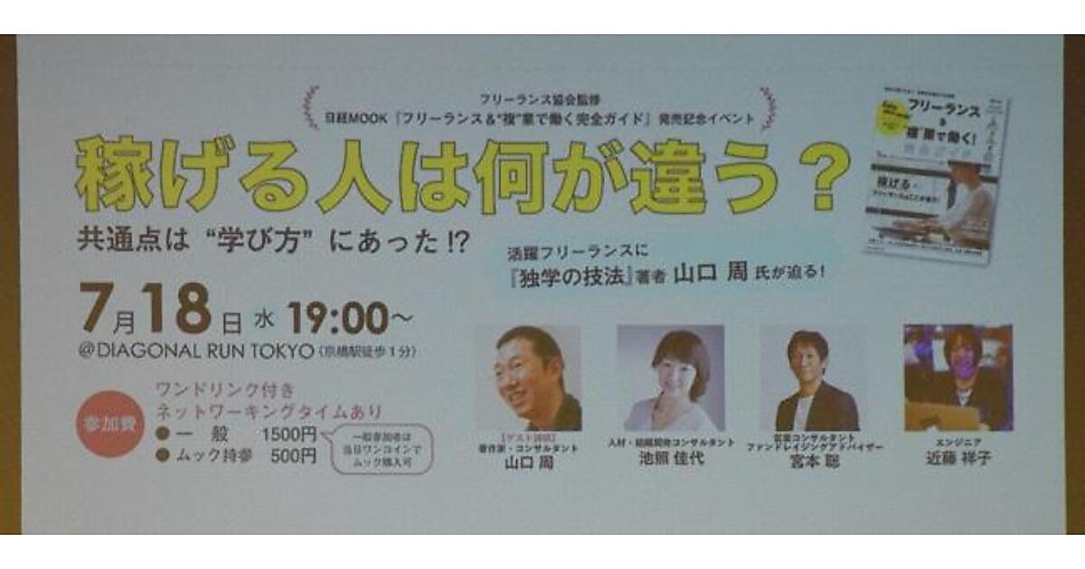 7月18日(水)、東京のDIAGONAL RUN TOKYOにて「稼げる人は何が違う?共通点は“学び方”にあった!?日経MOOK『フリーランス&“複”業で働く完全ガイド』発売記念イベント」が開催された。