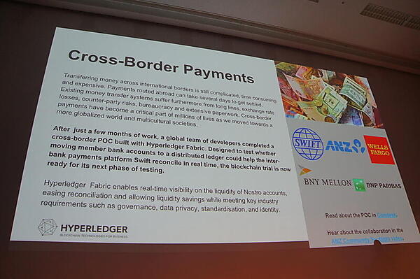 HyperLEdgerの事例としては、まず銀行業界でSWIFT(Society for Worldwide Interbank Financial Telecommunication、国際銀行間通信協会)が国際送金にHyperledger Fabricベースのブロックチェーンを採用した実験を発表している。これにより、従来は3〜4日かかっていた手続きが5分に短縮されるという。