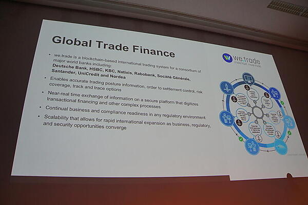またブロックチェーンによる国際取引システムのwe.tradeは、ドイツ銀行やHSBCなど大手銀行のコンソーシアムによる。Hyperledger Fabricをベースにしており、「先週、本番環境で使われるようになった」とBehlendorf氏は紹介した。