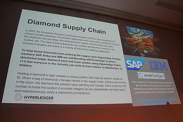 ダイヤモンドが採掘されてから販売されるまでをHypberledger Fabricベースの分散台帳でトレースするEverledgerという取り組みもある。これにはSAPやIBMなども参加している。
