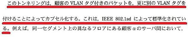 なお、IEEE802.1adの場合、網掛け部分のタグはサービスタグ(S-Tag)と呼ばれ、TPIDには0x88a8の値が入ります(※ネットワークによっては0x88a8ではなく0x9100などの値が入る場合もあります)。また、内側のタグはカスタマータグ(C-Tag)と呼ばれ、TPIDには0x8100の値が入ります。