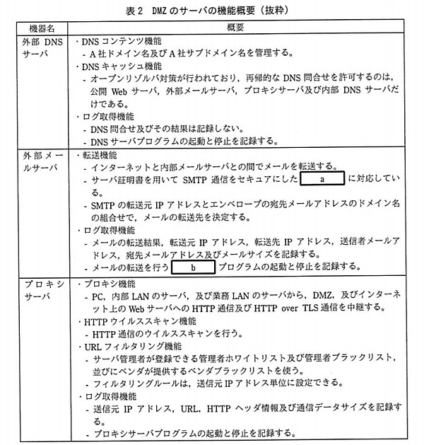 メールサーバ、DNSサーバ、プロキシサーバなどに関する総合問題です。頻出テーマが盛りだくさんの問題であり、難易度も標準であるため、知識や解法の確認におすすめです。