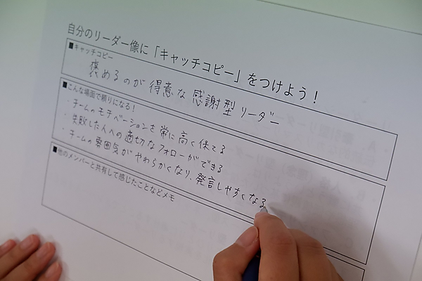 森さん曰く、「女性はサーバント型の方が多い」とのこと。これらのことを踏まえつつ、自分のリーダー像にキャッチコピーを付けてみることになりました。