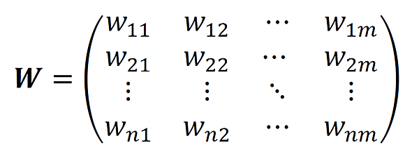 では、これらの重みをまとめて簡潔に表すにはどうしたら良いでしょうか? そうです、行列を使うのです。