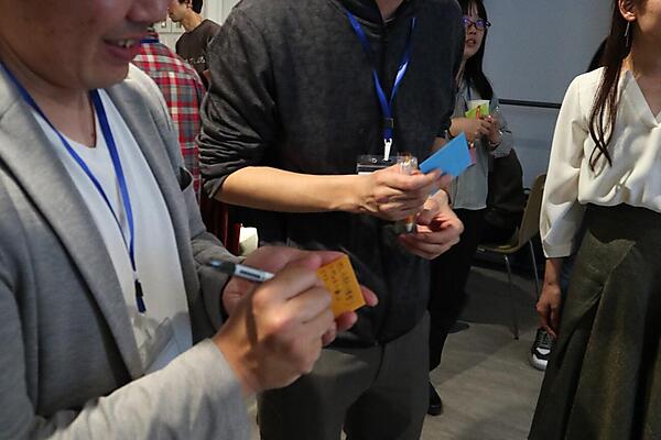 この日、会場では新しい働き方LABでやってみたいことのアイディア出しをするワークショップも行なわれた。参加者は、配られた付箋に自分が新しい働き方LABでやっていきたいこと、やってほしいことを記入。