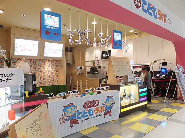 モノづくり こども.ラボは、合同会社DMM.comが秋葉原に構える総合型プラットフォーム「DMM.make AKIBA」を通じて、未就学児から小学生までを対象とした先端テクノロジーを活用した展示、デモ、ワークショップを体験できる特設ブース。