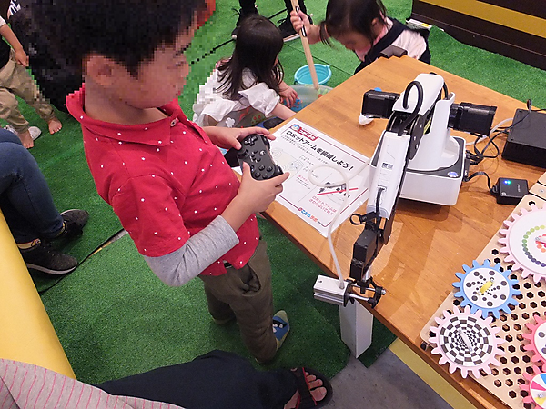 また、今回のブースはDMM.make AKIBAのコミュニティでできたつながりにより実現したもので、「遊ぶ」ということを軸にこどもたちの意志でモノづくりに触れてもらうことができたという。実際に遊ぶ様子から主催側が何かインスパイアされることがあったかを聞いたところ、IoTミニ四駆やロボットアームなど大人でも操作が難しいものを子ども達の学習能力ですぐに自在に動かせるようになり、さらに今度はその子が自主的に周りに使い方を教える姿が見られ、子どもにもこのようなことができるのだと、親御さんからは感嘆の声が上がったそう。