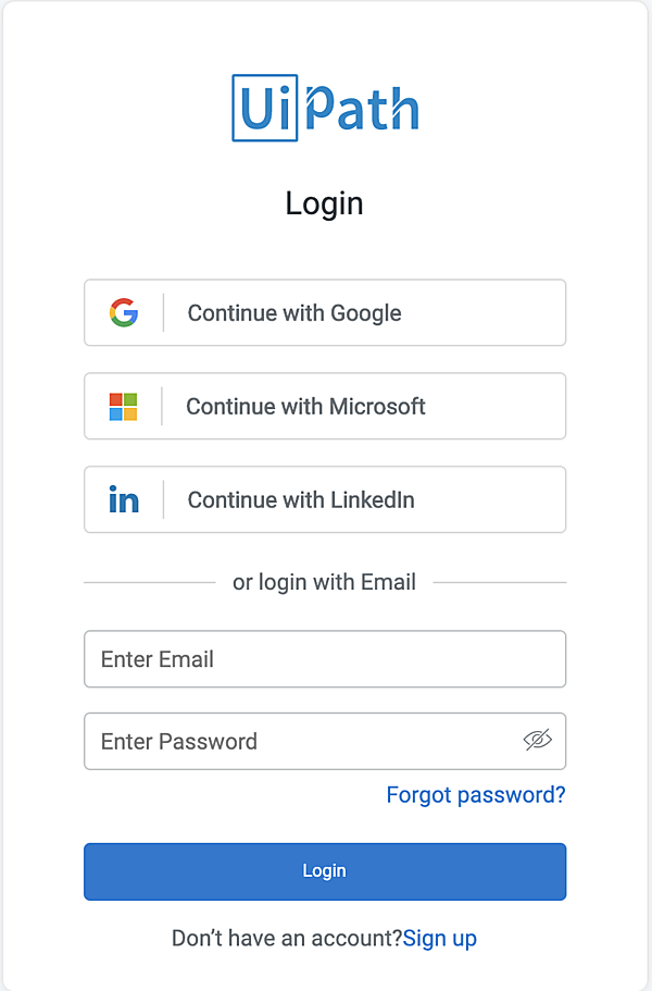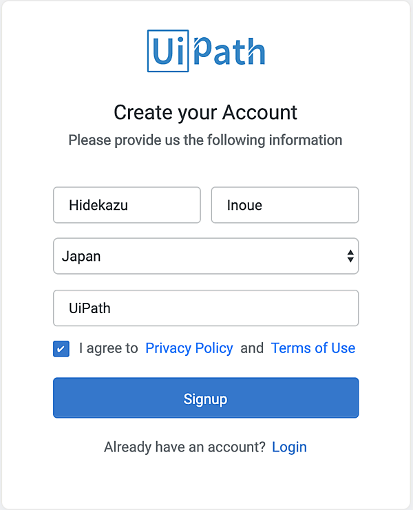 GoogleやMicrosoftのアカウントをお持ちであれば、そちらにアカウントを紐付けることができます。これらを使用しない場合、「Sign Up」のリンクからアカウントを作成できます。なお、コミュニティ版の利用条件に関してはこちらのリンクを参照してください。
